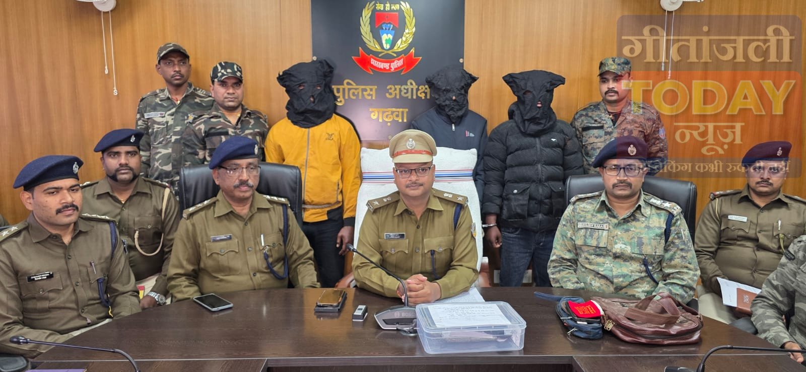 गढ़वा : नगर उंटारी थाना क्षेत्र अंतर्गत 29 नवंबर 2025 को राधा कृष्णा ज्वेलर्स के मालिक को दुकान बंद कर घर लौटने के दौरान गोली मारकर घायल करने एवं लूटपाट की घटना का पुलिस ने सफल उद्भेदन कर लिया है। इस मामले में तीन शातिर अपराधियों को गिरफ्तार किया गया है, जिनके पास से हथियार, लूटा गया सामान और घटना में प्रयुक्त बाइक बरामद की गई है।