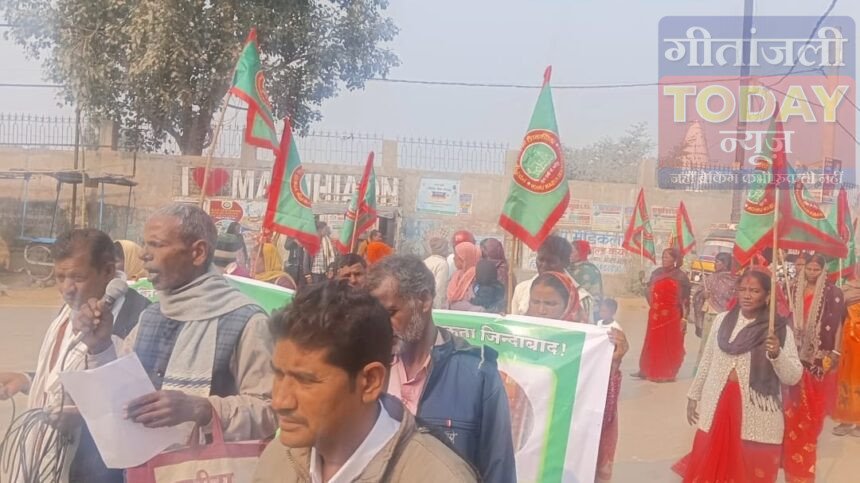 मझिआंव (गढ़वा)किसान मजदूरों व आम जनता की विभिन्न समस्याओं के समाधान की मांग को लेकर क्रांतिकारी किसान मजदूर यूनियन के बैनर तले सोमवार को प्रखंड कार्यालय परिसर में एकदिवसीय धरना-प्रदर्शन का आयोजन किया गया। धरना का नेतृत्व क्रांतिकारी किसान मजदूर यूनियन के प्रखंड अध्यक्ष अशोक पाल उर्फ बिंदेश्वरी पाल ने किया।