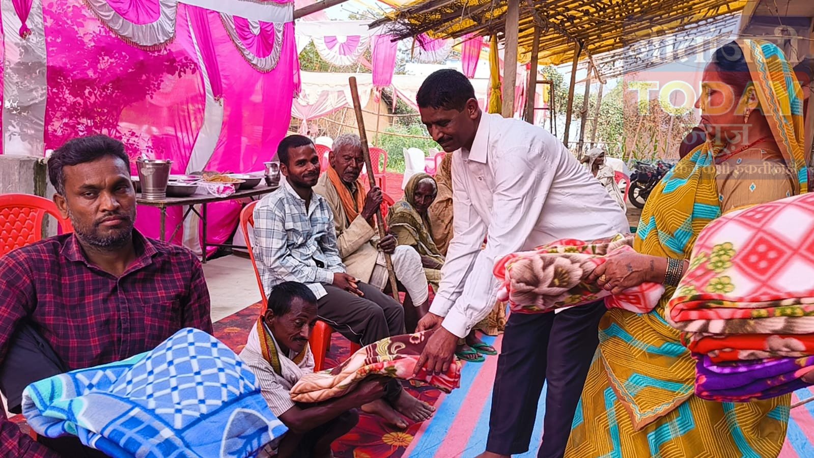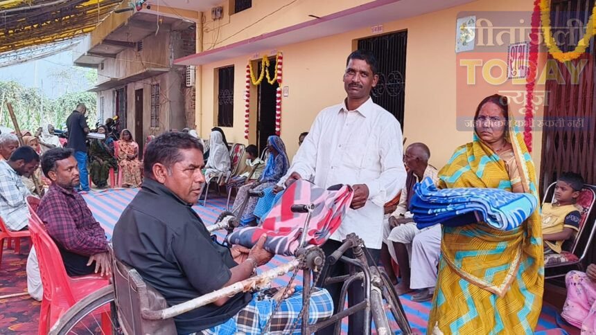 सगमा (गढ़वा)। सगमा प्रखंड के बीरबल गांव निवासी झारखंड पुलिस में कार्यरत हवलदार प्रसिद्ध नाथ प्रजापति ने अपने बड़े पुत्र चंदन प्रजापति की शादी को खास और यादगार बनाने के लिए अनोखी पहल की। उन्होंने शादी के शुभ अवसर पर असहाय और दिव्यांग लोगों को आमंत्रित कर उनका सम्मान किया तथा उनके बीच वस्त्र वितरण कर आशीर्वाद प्राप्त किया।इस अवसर पर प्रसिद्ध नाथ प्रजापति ने लगभग एक सौ एक जरूरतमंद लोगों के बीच साड़ी और कंबल का वितरण किया। कार्यक्रम के दौरान सभी जरूरतमंदों को पहले स्वादिष्ट भोजन कराया गया। हवलदार प्रसिद्ध नाथ प्रजापति ने अपनी पत्नी के साथ स्वयं लोगों को भोजन परोसा और उनसे अपने पुत्र के सुखी वैवाहिक जीवन के लिए आशीर्वाद लिया। इस पहल से उपस्थित लोगों के चेहरे पर खुशी झलक उठी।इस मौके पर उन्होंने कहा कि सामान्यतः शादी-विवाह में लोग अपने रिश्तेदारों और परिचितों को आमंत्रित कर भोजन कराते हैं, लेकिन समाज में ऐसे कई असहाय और दिव्यांग लोग भी हैं जिनकी ओर अक्सर किसी का ध्यान नहीं जाता। उन्होंने बताया कि भगवान भोलेनाथ की प्रेरणा से उन्होंने जरूरतमंदों को भोजन कराने और वस्त्र देने का निर्णय लिया।उन्होंने कहा कि आज उन्हें ऐसा महसूस हो रहा है कि समाज में रहने वाले जरूरतमंद और दिव्यांग ही सच्चे भगवान का रूप होते हैं। इस कार्यक्रम को देखकर उन्हें अपार खुशी मिल रही है, जिसे शब्दों में बयां करना कठिन है।अपने पुत्र की शादी में इस प्रकार का सामाजिक आयोजन कर प्रसिद्ध नाथ प्रजापति ने क्षेत्र में एक मिसाल कायम की है। इस पहल की क्षेत्र में काफी सराहना हो रही है और लोग इसे प्रेरणादायक कदम बता रहे हैं।